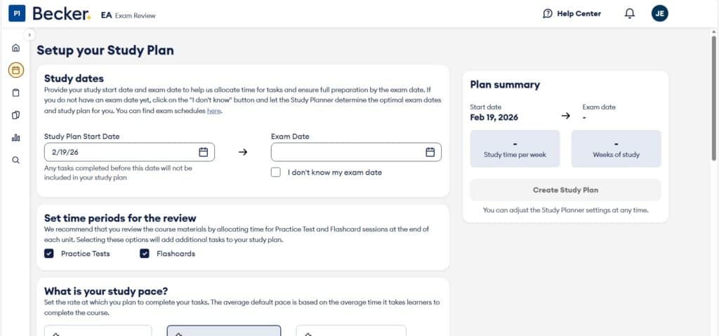 Becker EA Review delivers a clean, structured prep course that builds confidence. The study planner removes planning stress, the instructors are engaging and highly credentialed, the time estimates make studying predictable, and the simulated exams get you truly prepared for the real thing.
